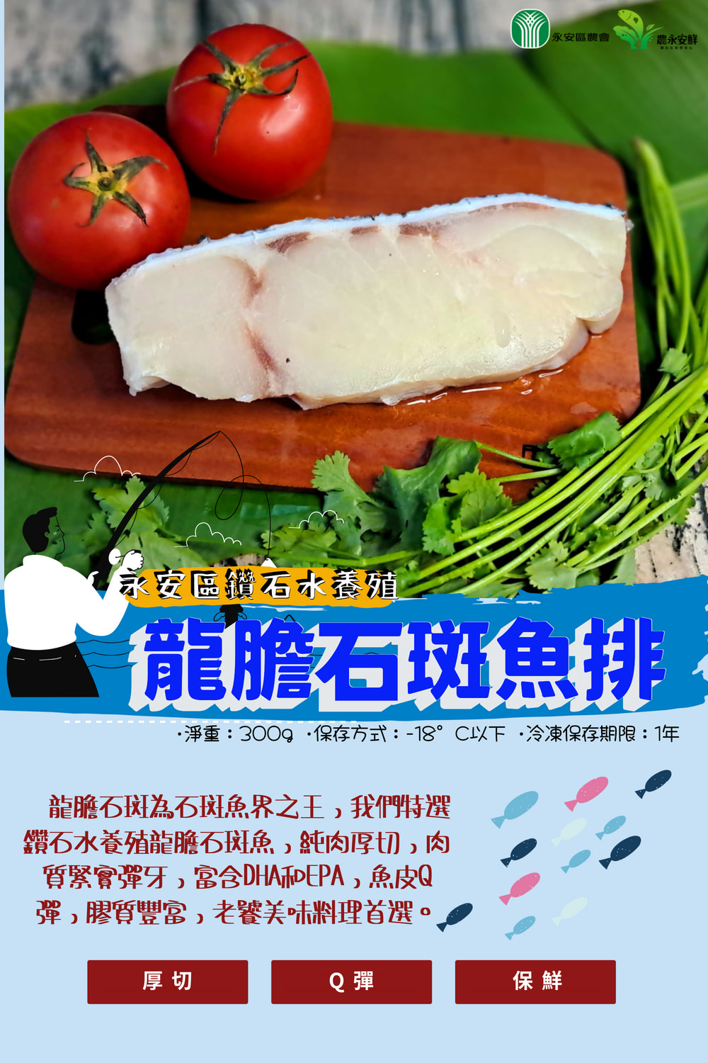- 【龍膽石斑排特色】:厚切、Q彈、保鮮 龍膽石斑為石斑魚界之王,我們特選鑽石水養殖龍膽石斑魚,純肉厚切,肉質緊實彈牙,富含DHA和EPA,魚皮Q彈,膠質豐富,老饕美味料理首選。