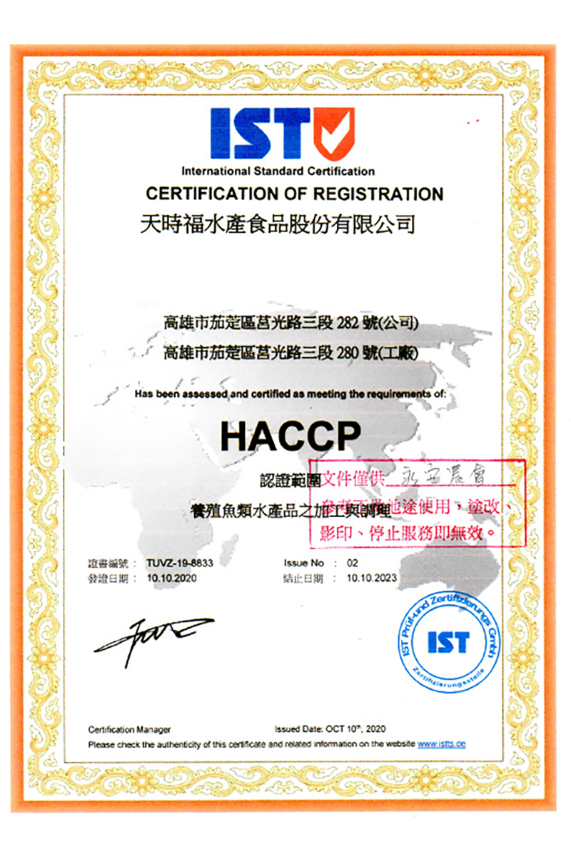 - 冷凍食品之加工與銷售ISO 22000、HACCP